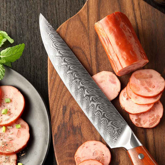 Cuchillo Rebanar 21cm 10Cr+Damasco Espina PaloRosa
