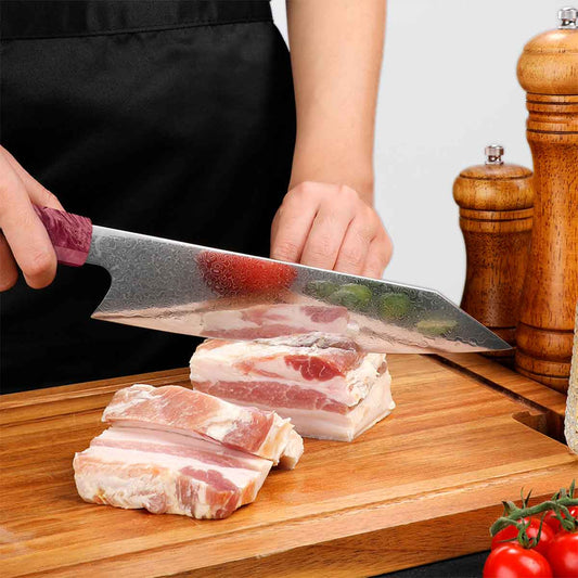 Ahora, el GYUTO es como el primo elegante del cuchillo de chef. Con su hoja delgada y ligera, es como si estuviera vestido para una gala mientras corta verduras con precisión quirúrgica. ¡Un verdadero maestro de la elegancia culinaria!