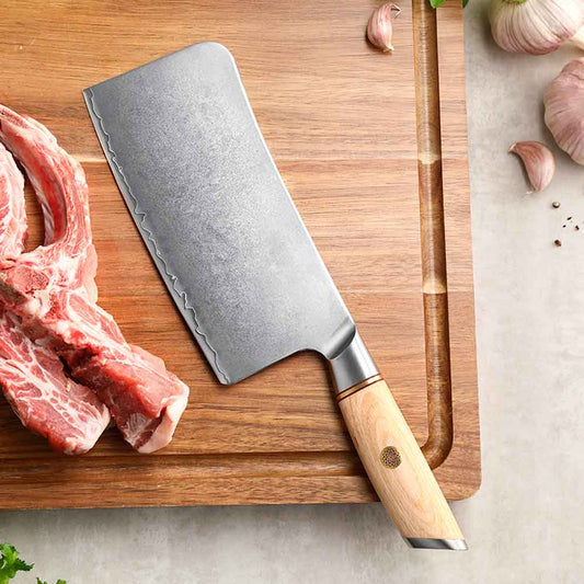 Hacha para huesos 17cm 10Cr+Damasco Sicomoro