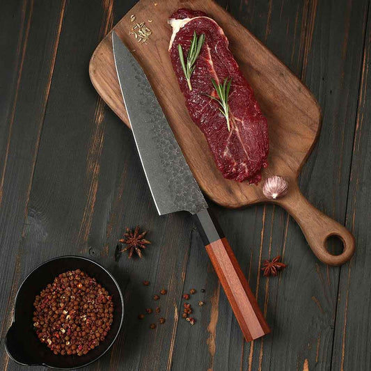 Cuchillo Kiritsuke 21cm Kurouchi martillado 440c Mango Ebano+Secuoya