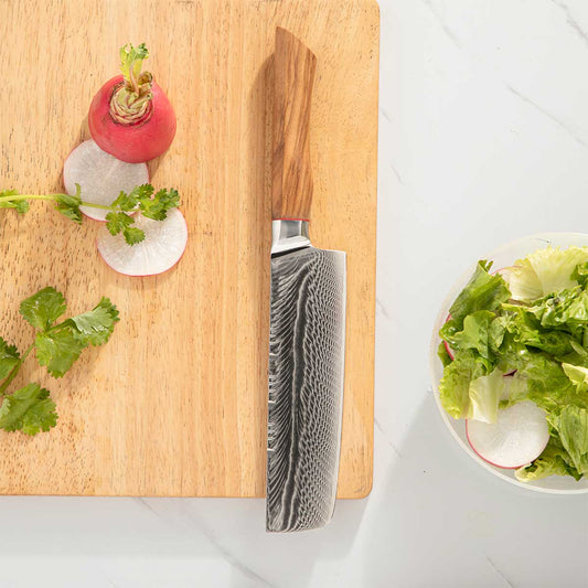 En contraste, el Nakiri se distingue por la ausencia de punta, lo que lo convierte en una herramienta ideal para cortar y picar vegetales con un movimiento de balanceo suave y controlado.