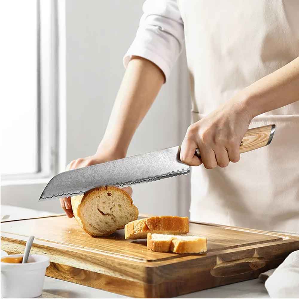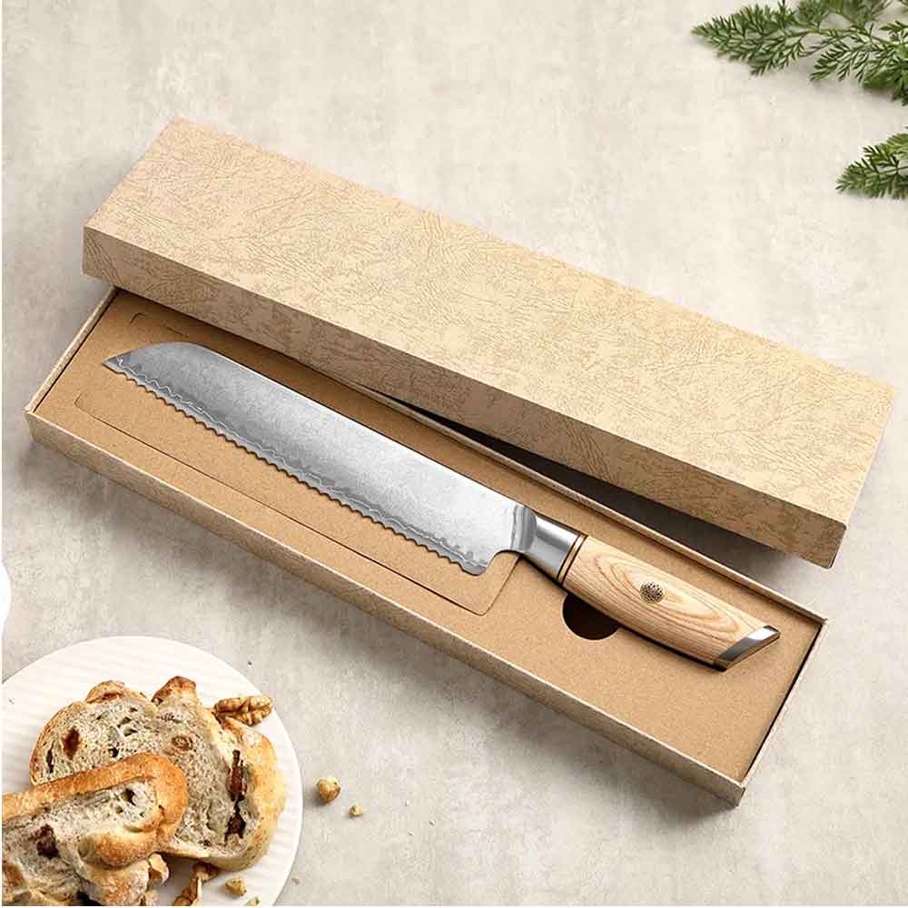 Este cuchillo de pan cuenta con una hoja de 21 cm, diseñada para ofrecer un corte preciso y limpio en todo tipo de panes. Fabricado en acero 10Cr, asegura durabilidad y resistencia, mientras que su mango de Pakkawood proporciona un agarre cómodo y seguro. Con un peso de 235 g, es ideal para chefs profesionales y aficionados que buscan calidad y funcionalidad en la cocina.