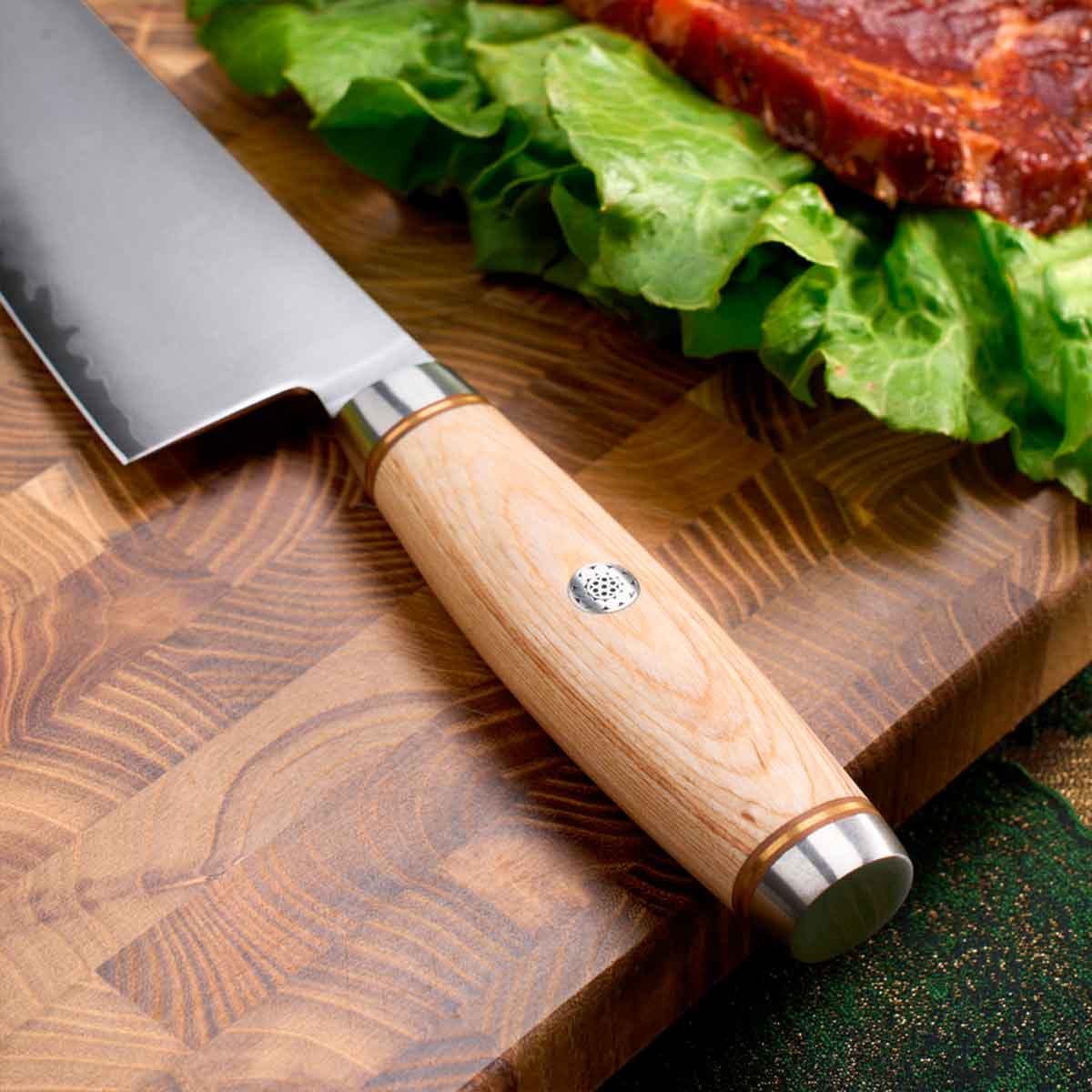 Mango ergonómico de material aglomerado PakkaWood y aros de Cobre.
