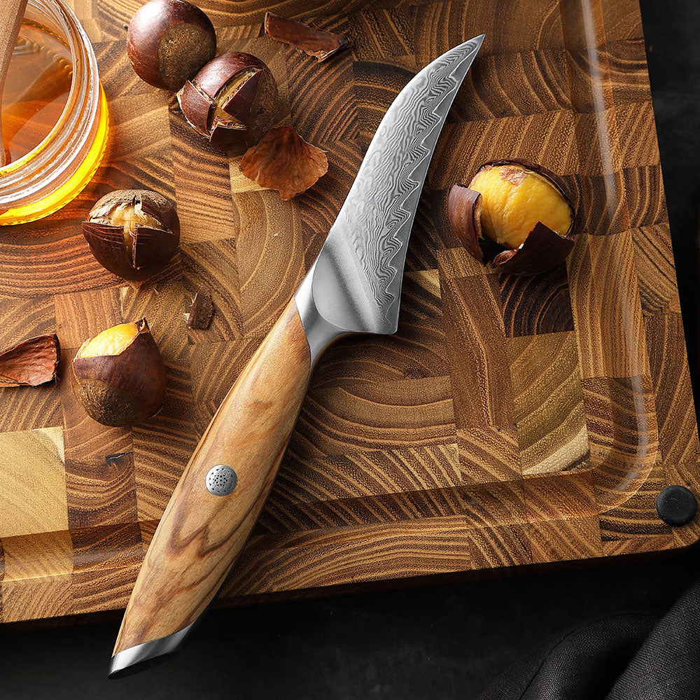 Cuchillo TORNEADOR 9cm 14Cr+Damasco Olivo