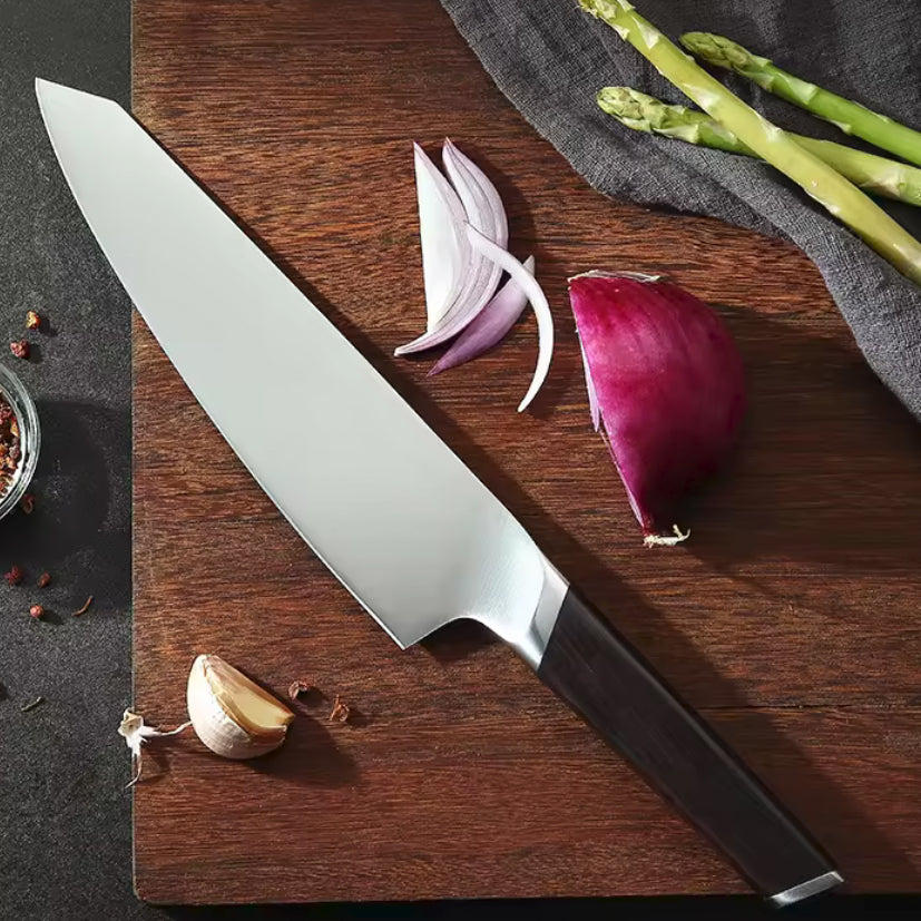 Cuchillo Gyuto 8”/ Cuchillo de Chef: Acero inoxidable: Cuchillo ideal para los diferentes estilos de corte, desde carne de res y pollo, pescado, verduras y frutas.