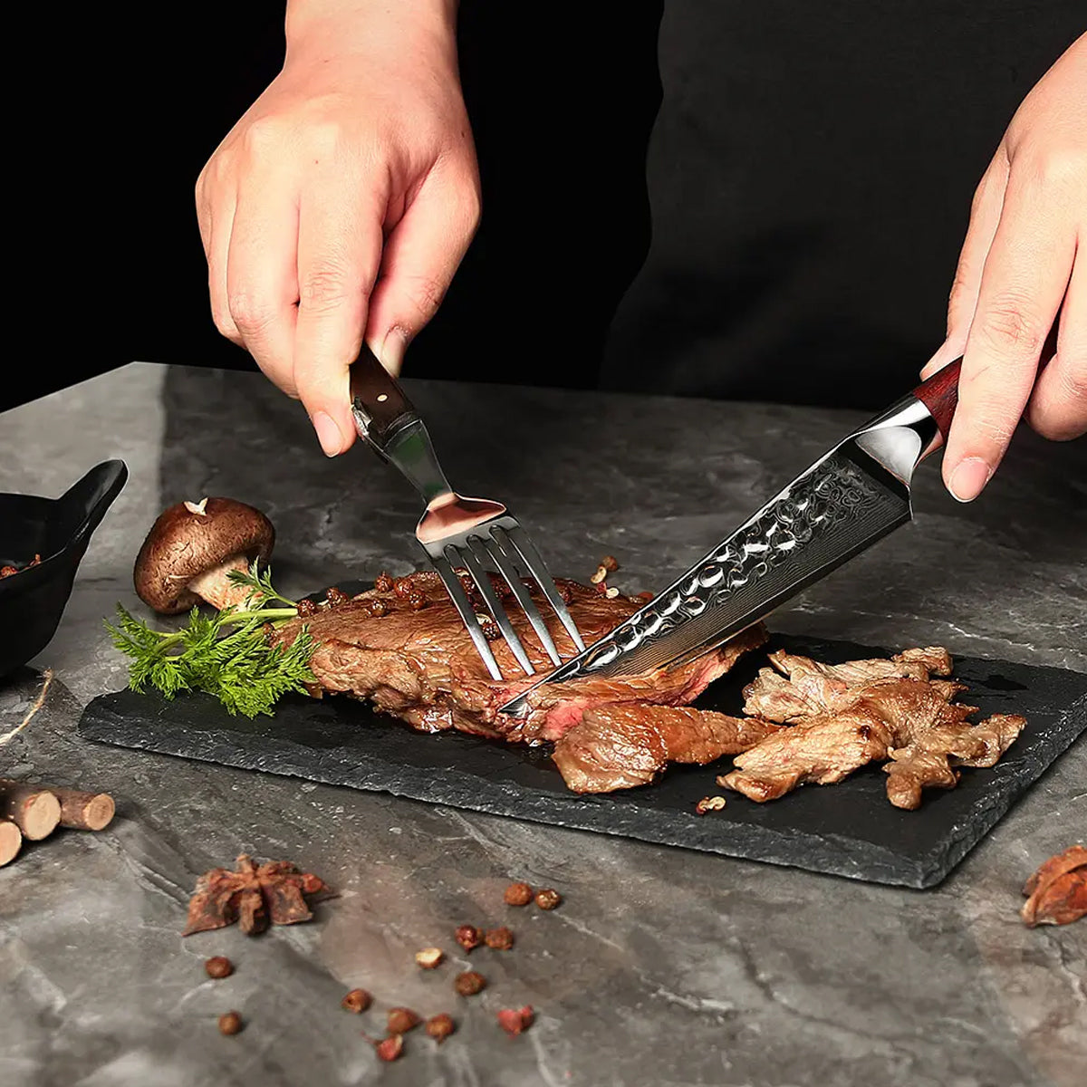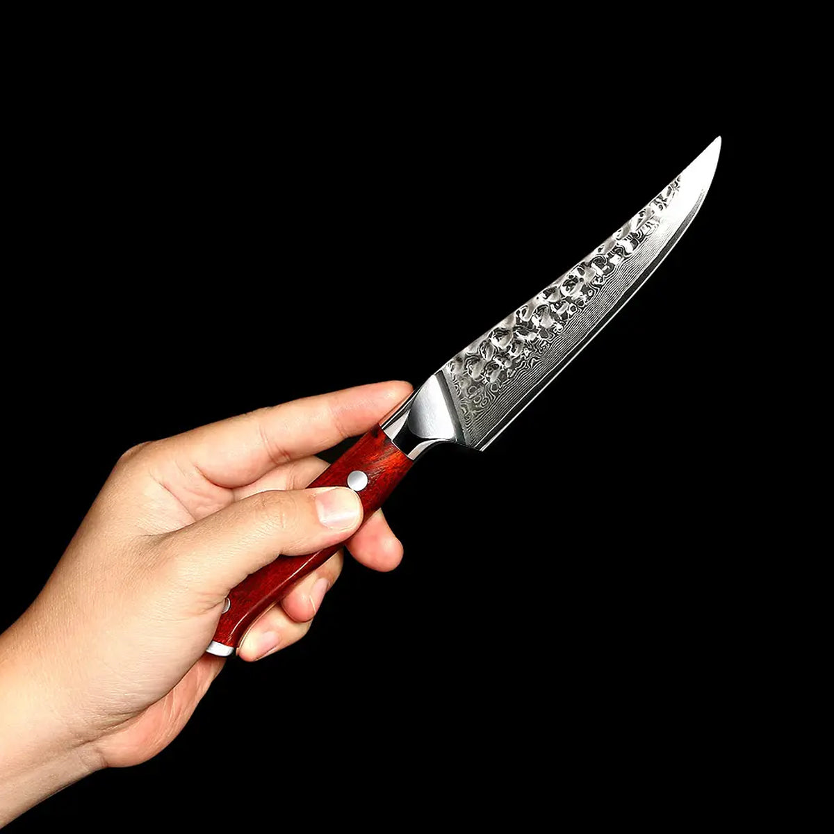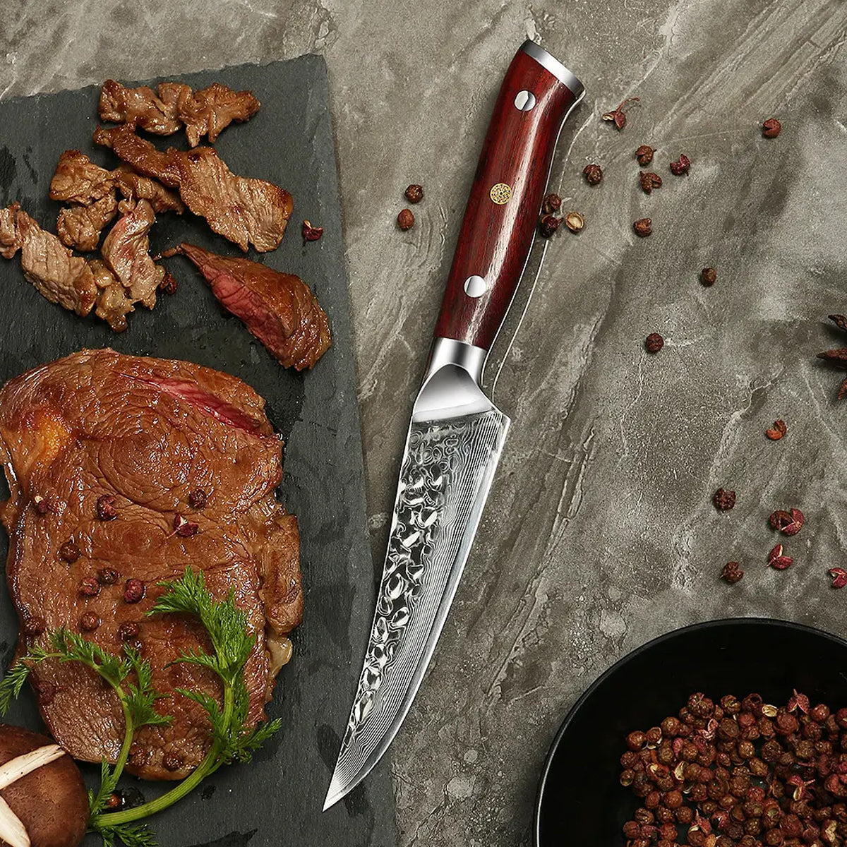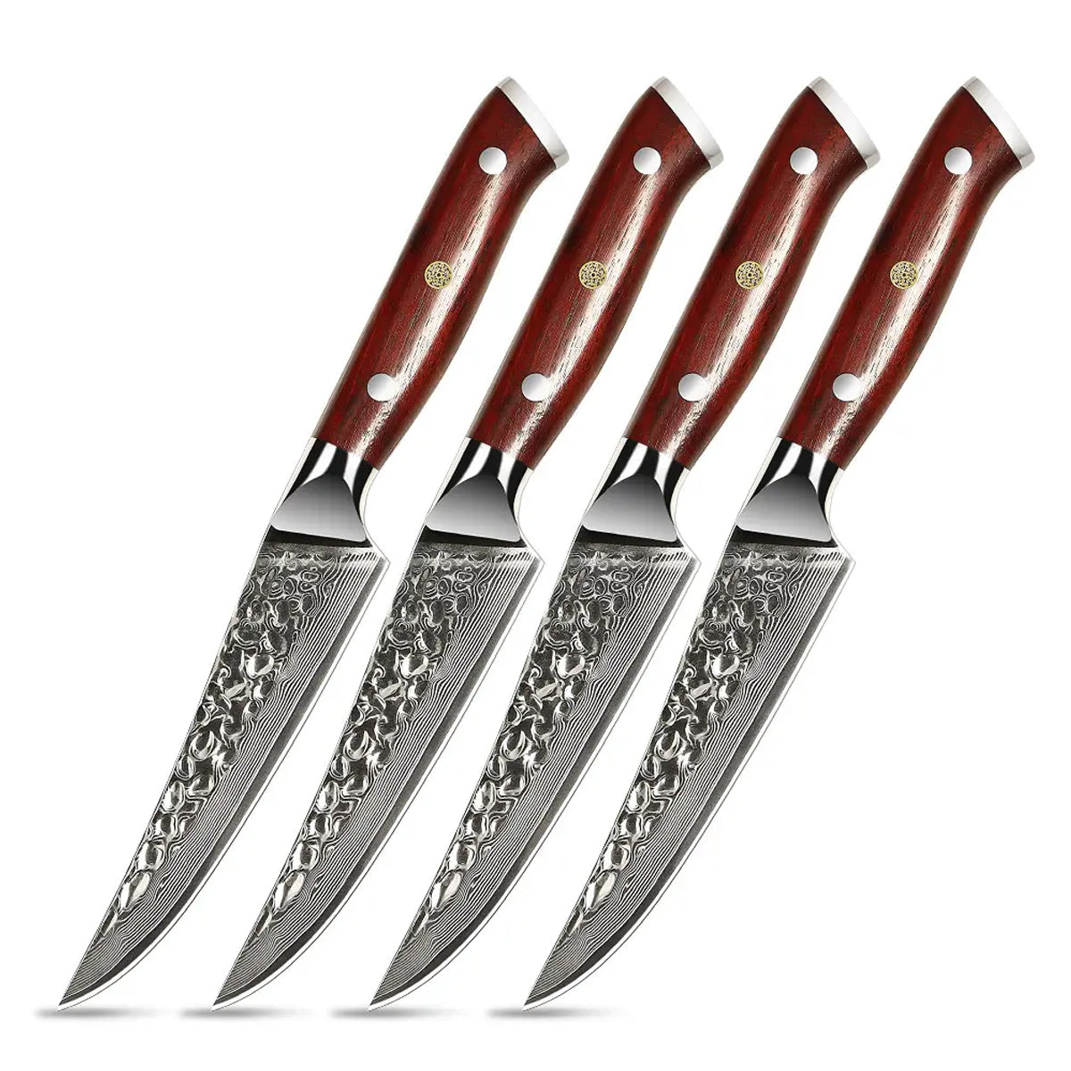 Cuchillo Bistec 12cm 10Cr+Damasco MARTILLADO PaloRosa (Set x4 unidades)