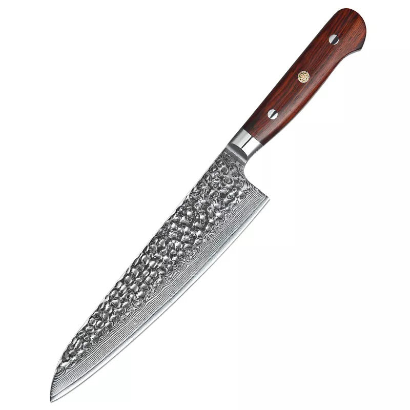 Cuchillo Gyuto 21cm 10Cr+Damasco Martillado PaloRosa