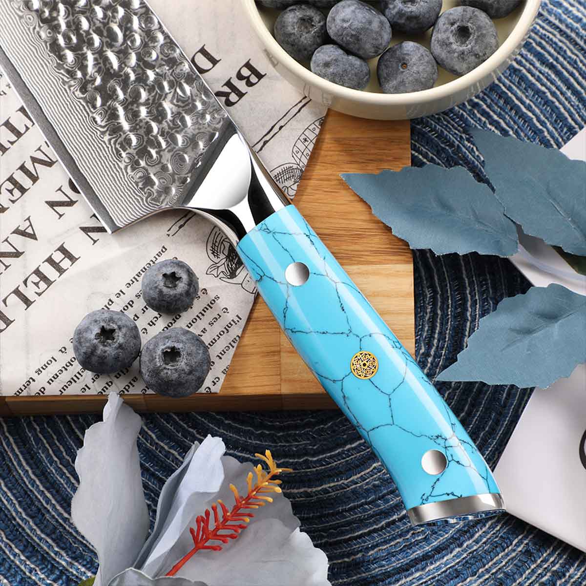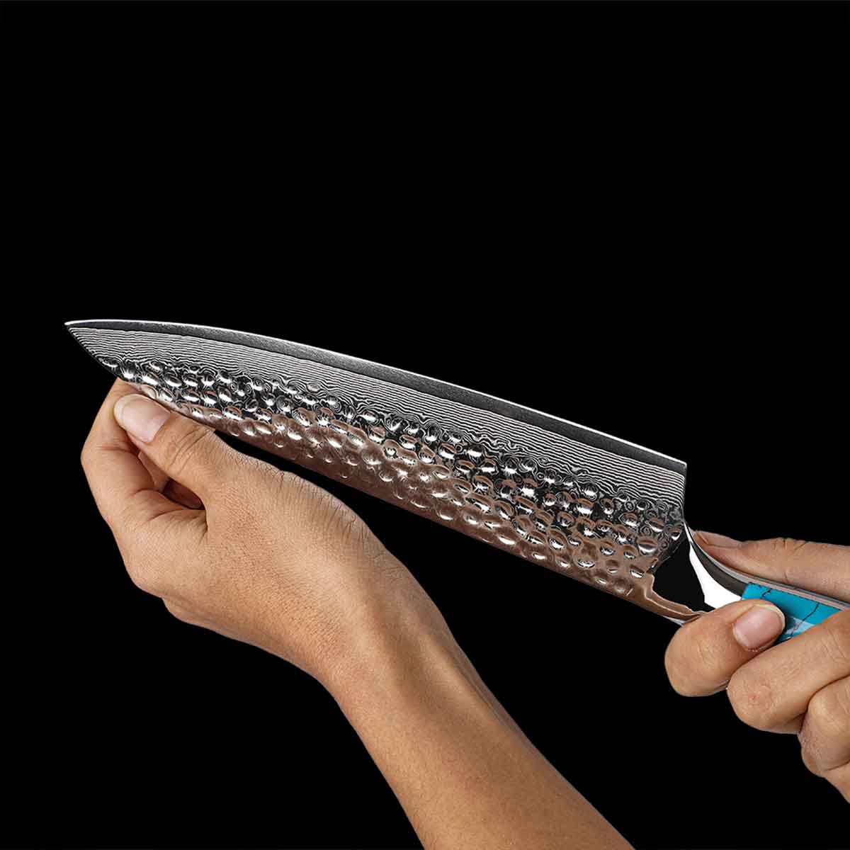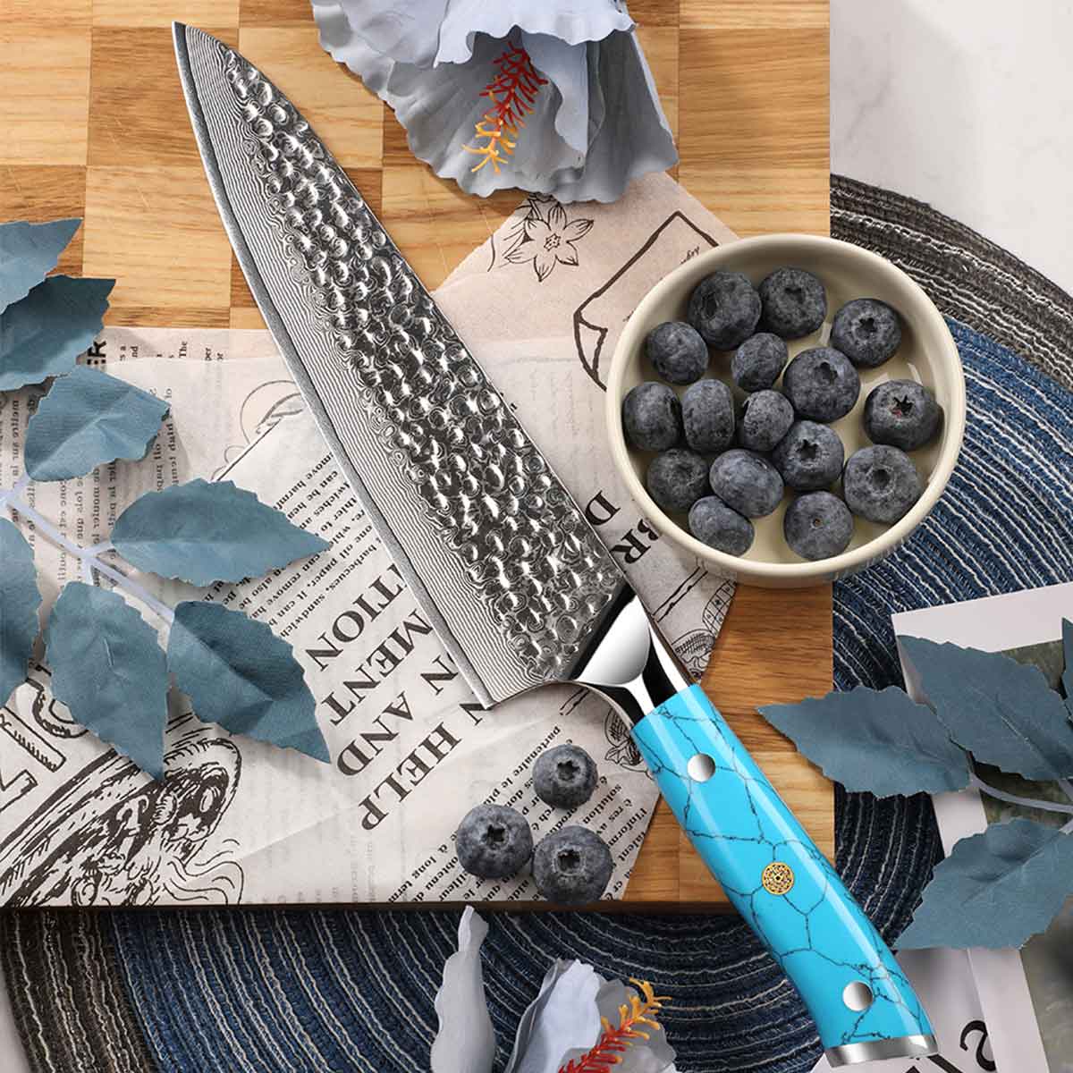 Cuchillo Gyuto 21cm 10Cr+Damasco Martillado Turquesa