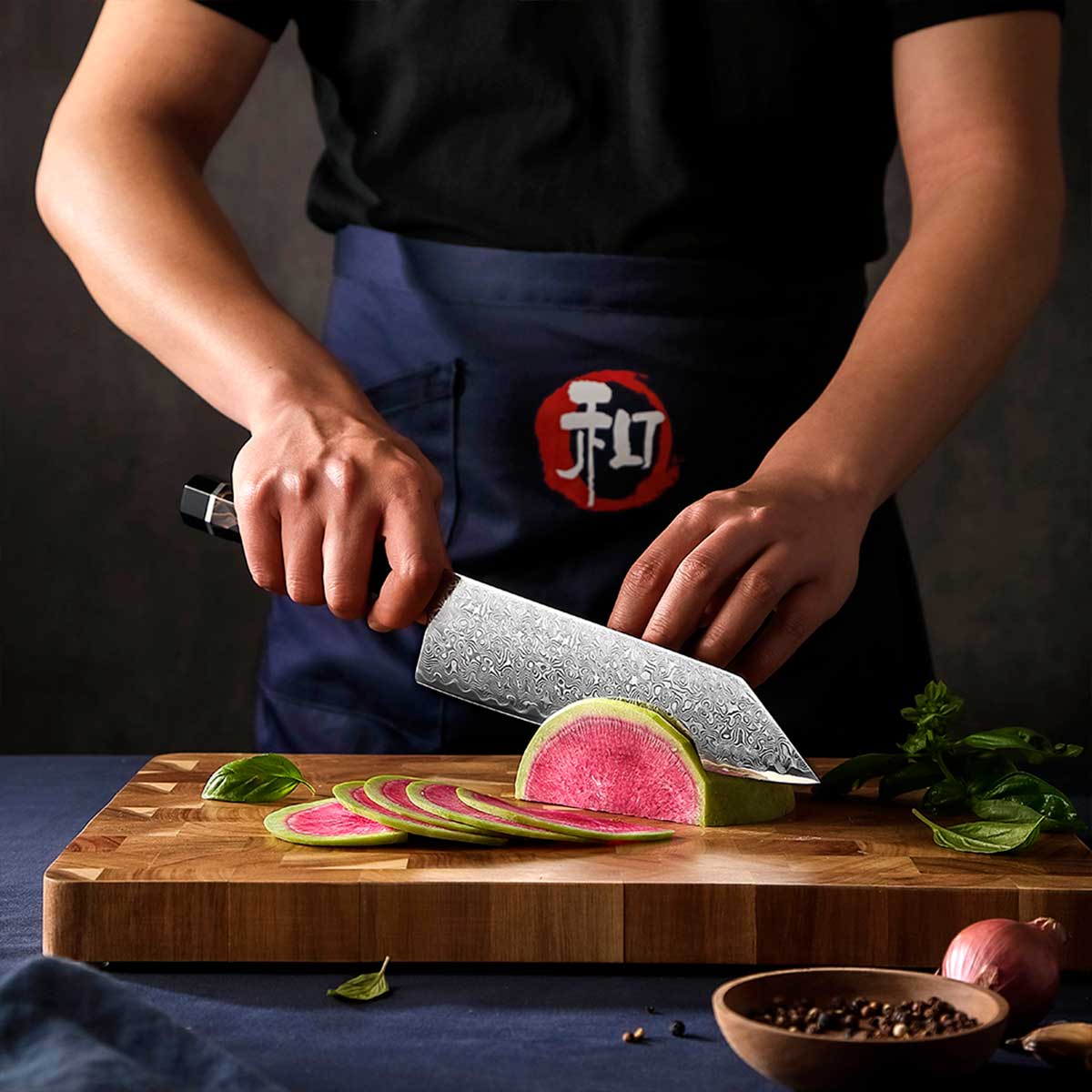 - Exterior con diseño DAMASCO San Mai con 49 capas de un acero blando.