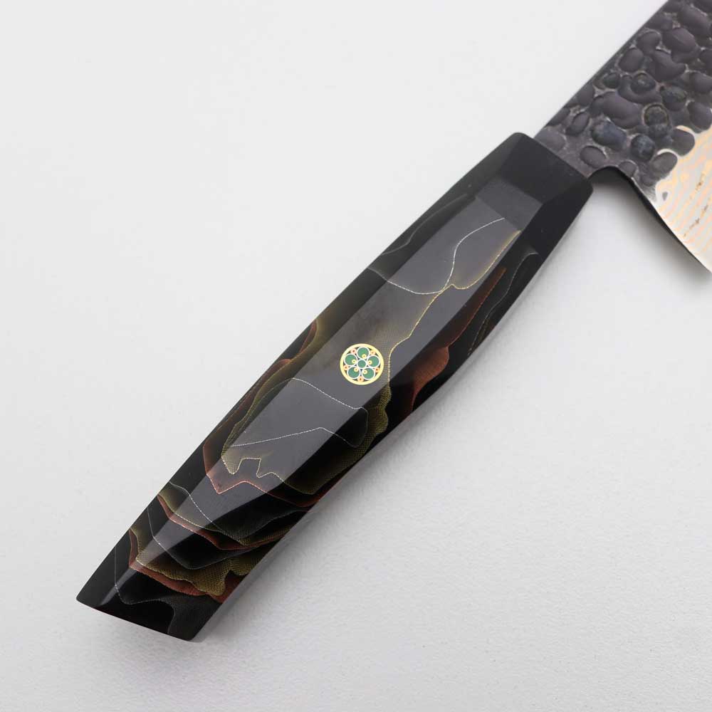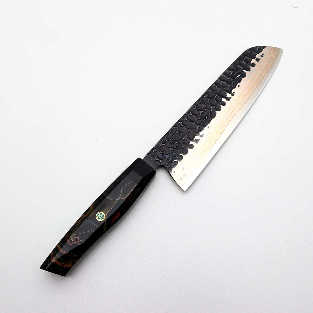 Cuchillo Santoku 18cm 10Cr+Damasco de Cobre Martillado+Kurouchi Resina