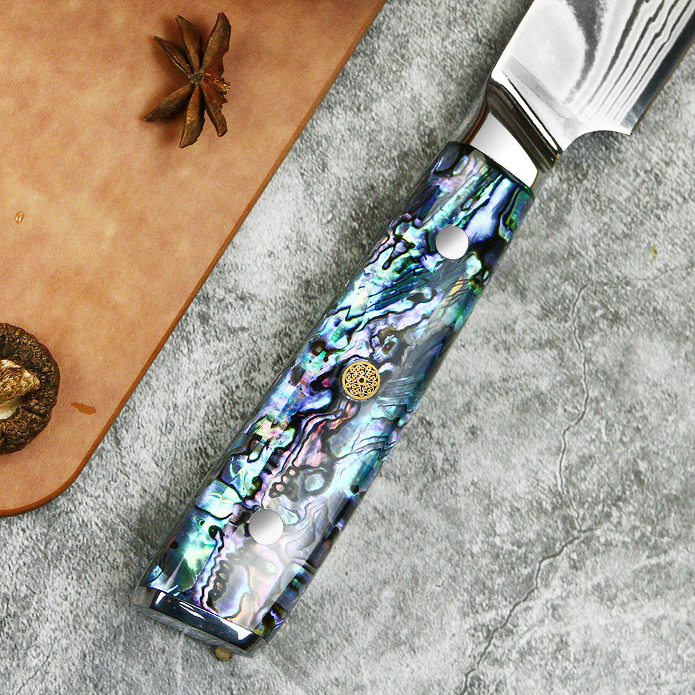Mango ergonómico de conchas de abalón cubiertas con resina