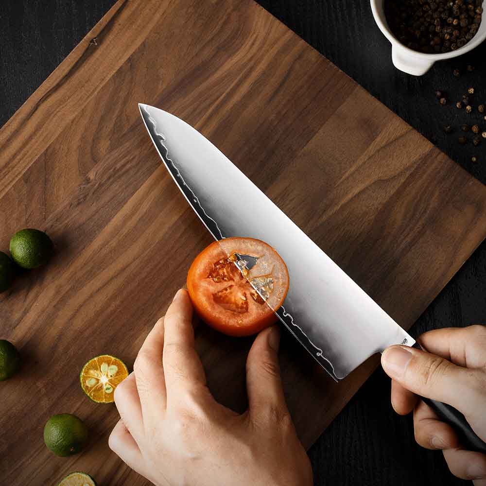 Este Gyuto de 21 cm está diseñado para ofrecer precisión en cada corte, gracias a su hoja de acero 10Cr clad, perfecta para tareas versátiles en la cocina. El mango de G10 garantiza durabilidad y un agarre firme, mientras que su peso de 231 g asegura un equilibrio ideal. Esta combinación de materiales modernos y un diseño ergonómico hace que este cuchillo sea una herramienta confiable para cualquier cocina.