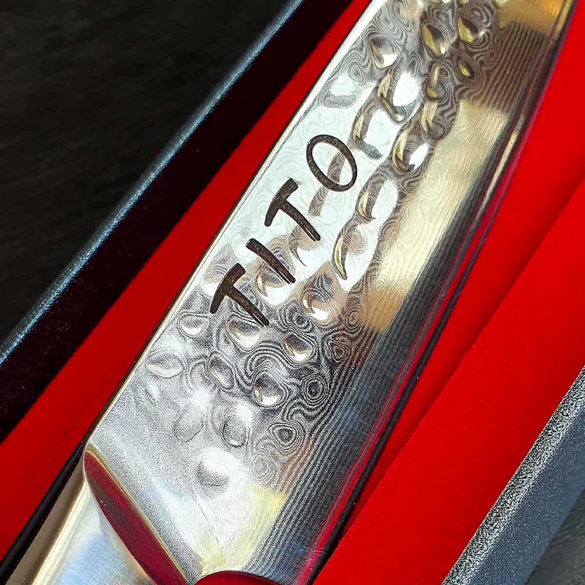 Haz que tu cuchillo sea verdaderamente tuyo con nuestro grabado láser en negro, elegante y duradero. Añade un toque distintivo con el mensaje perfecto y recuerda considerar el tamaño de la hoja para un resultado ideal. ¡Personalízalo hoy y convierte tu herramienta en una pieza única!