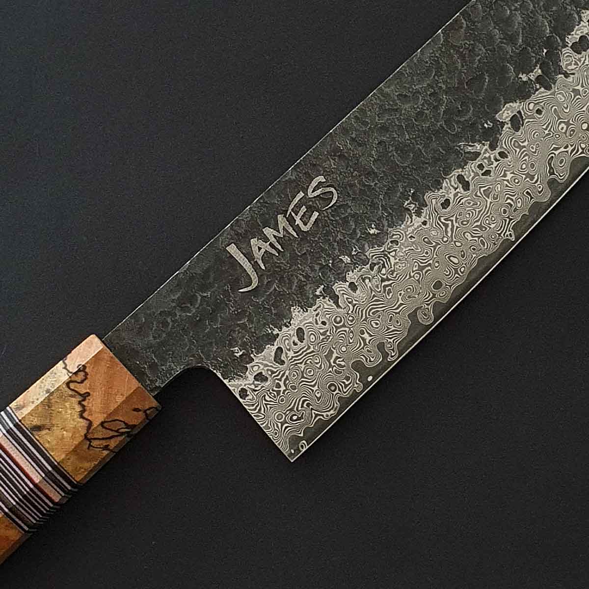Haz que tu cuchillo sea verdaderamente tuyo con nuestro grabado láser en blanco. Ideal para los cuchillos con hojas con acabado kurouchi (negro). Añade un toque distintivo con el mensaje perfecto y recuerda considerar el tamaño de la hoja para un resultado ideal. ¡Personalízalo hoy y convierte tu herramienta en una pieza única!