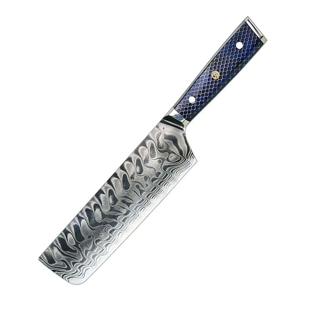 Cuchillo Nakiri 18cm 10Cr+Damasco PANAL azul