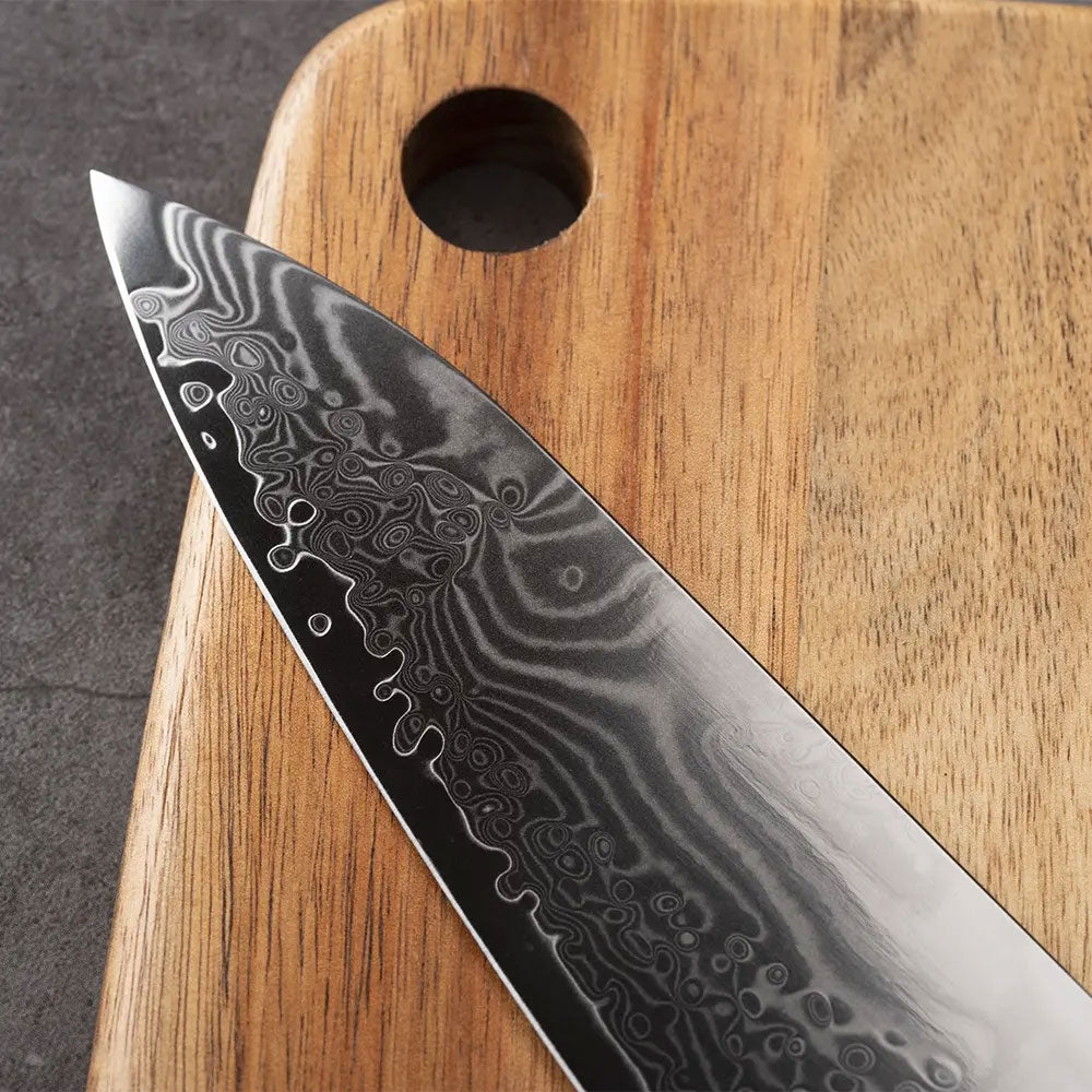 - Acero inoxidable a alto carbono VG10 en el núcleo